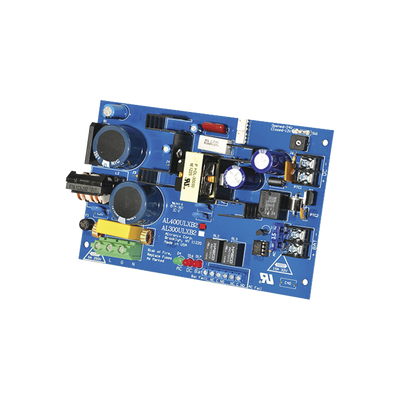 Fuente de alimentacion tipo tarjeta, salida seleccionable de 4 A@12 y 24 Vcc @ 3 A, capacidad de respaldo, relevador de supervision